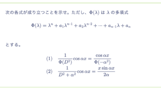 (2)& \quad \frac{1}{D^2 + \alpha^2} \sin \alpha x = – \frac{x \cos \alpha x}{2 \alpha}